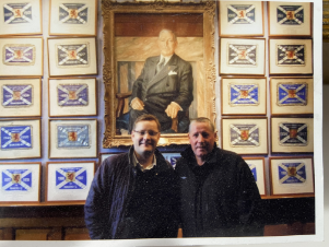 My hero as a child was Ted McMinn, an entertaining if unorthodox winger who played for Derby and my family’s team Rangers. I watched him score a worldy on his debut against Manchester United in a snow-storm whilst standing on a milk crate at the Baseball Ground. In the days when taking a milk crate into a football ground was considered normal. Years later a friend organised his testimonial match after Ted tragically had to have his leg amputated. He had just cycled from Glasgow to Derby using his other one. I persuaded him to let me write his biography and we launched it at Ibrox. Here’s us in the trophy room, watched over by the legendary Bill Struth.